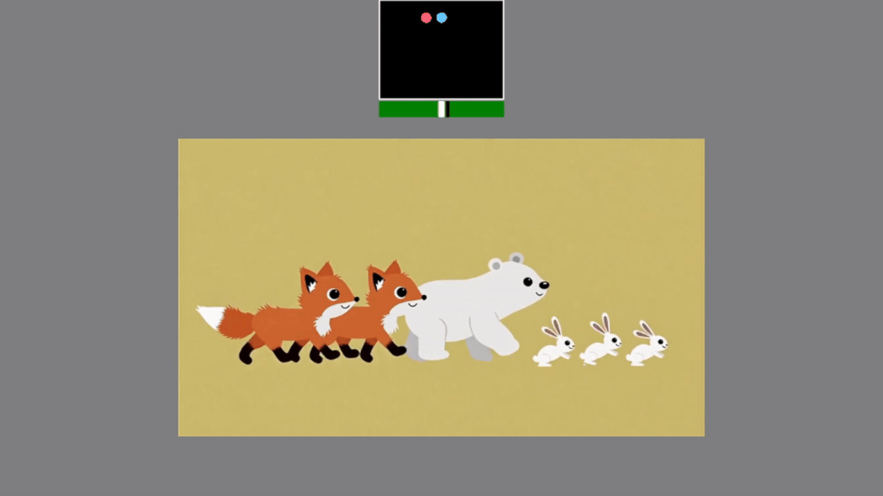 When you call show_status(), an animated video of animals appears to keep infants engaged. Overlaid on the video are two colored circlesβπ΅ light blue and π΄ pink βshowing where the tracker detects your participantβs eyes in real-time. A black rectangle marks the track box boundaries where tracking works best.